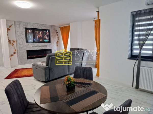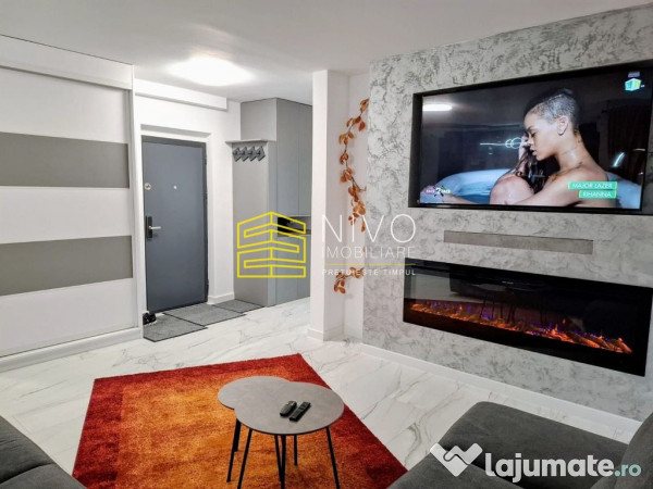 Izolat termic, dotat cu centrală proprie, șemineu electric, aer condiționat, geamuri termopan, uși interioare noi și parchet laminat.
