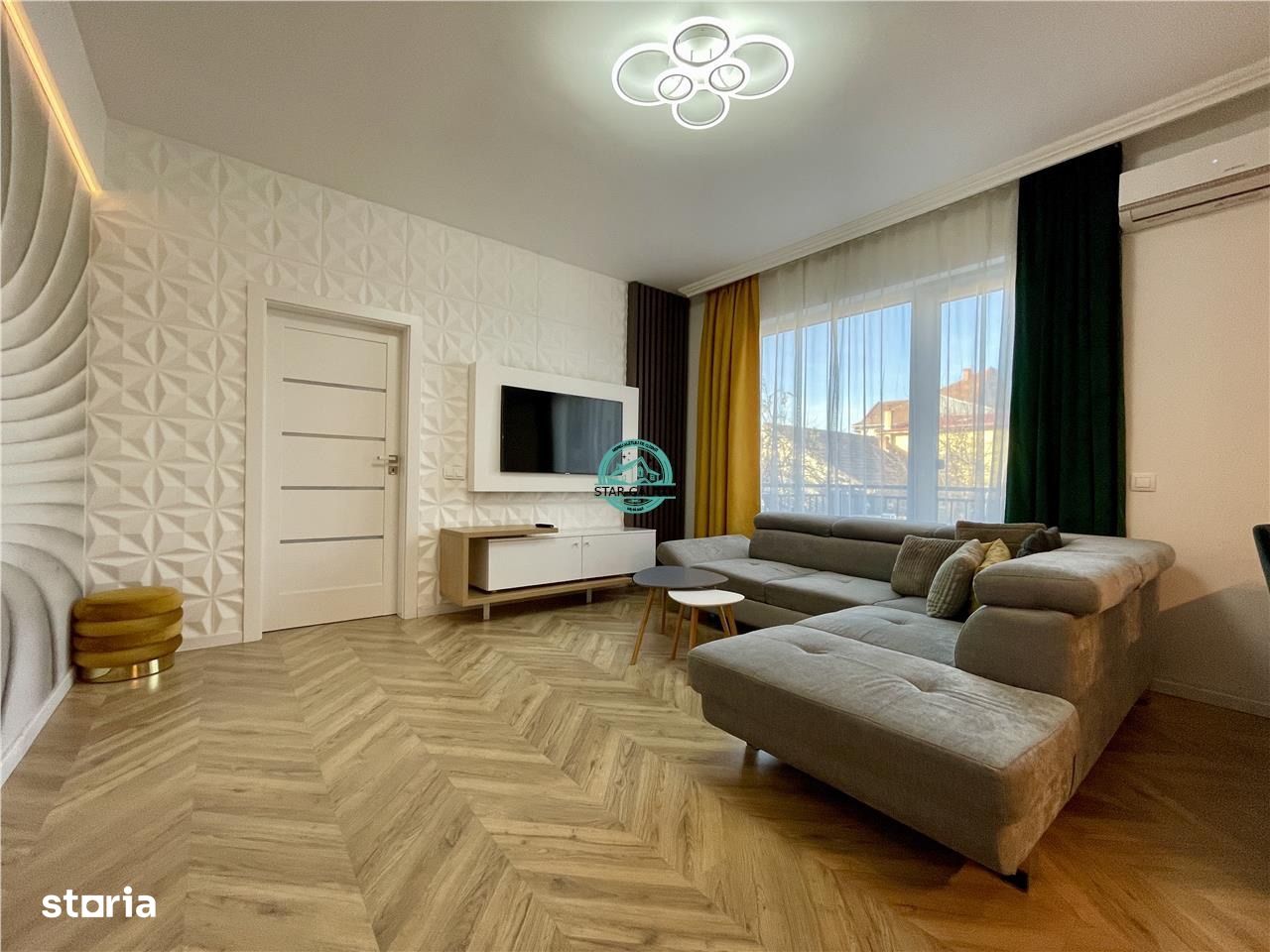 Star Galaxy Imobiliare va propune spre inchiriere un apartament deosebit cu 2 camere, mobilat si utilat la standarde de lux, situat la etajul 1 al unui bloc modern, finalizat in 2018, cu doar 2 etaje. Amplasat intr-o zona centrala, la doar 400 de metri de Teatrul National, acest apartament ofera o combinatie perfecta de confort, stil si accesibilitate.Caracteristici si dotari: • Loc de parcare privat in curtea interioara a blocului, cu acces controlat prin bariera. • Incalzire in pardoseala, aer conditionat, ferestre termopan cu trei straturi pentru un confort termic optim. • Finisaje moderne: gresie, faianta, parchet de calitate, videointerfon si usa metalica pentru siguranta sporita. • Electrocasnice de top: masina de spalat vase, masina de spalat rufe, cuptor electric, plita electrica, hota, cuptor cu microunde, frigider si doua smart TV-uri pentru un plus de confort si functionalitate.Compartimentare eficienta: • Living open-space cu bucatarie complet echipata • Dormitor spatios • Baie moderna • Hol generos • Balcon ideal pentru momente de relaxarePret: 640 Euro/luna + garantie.Comisionul agentiei: 50% din valoarea unei chirii, platit o singura data la semnarea contractului.Ce ne recomanda: • Inovatie: Prima agentie imobiliara care a introdus Turul Virtual 3D in Targu Mures. • Experienta solida: Peste 9 ani de succes in domeniul imobiliar. • Servicii internationale: Intermediem tranzactii atat in Romania, cat si in Dubai.