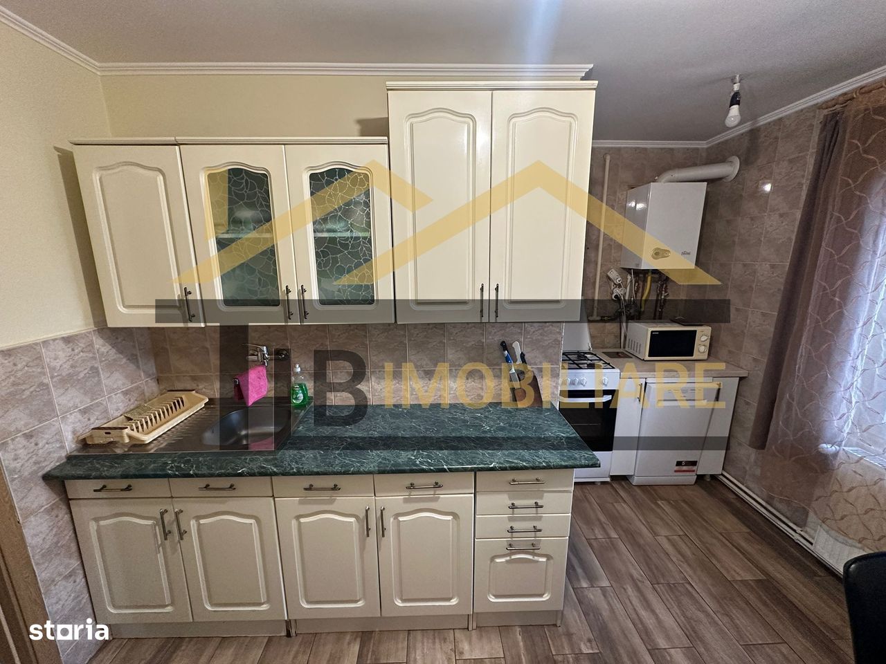 Bucătărie complet utilată – include mașină de spălat vase, frigider, cuptor cu microunde
