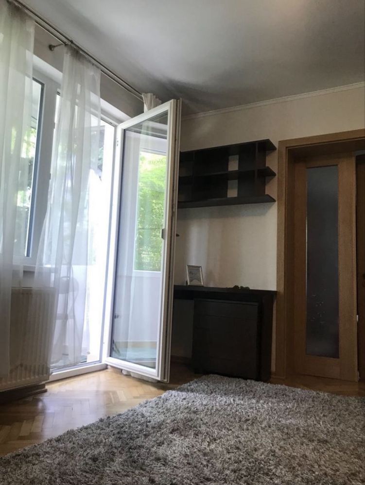 Apartament 2 camere, living si dormitor cu pat 180 latime, se află la etajul 1 cu balcon închis, parchet masiv si mocheta, bloc cărămida, cu curte interioara, lângă UMF.