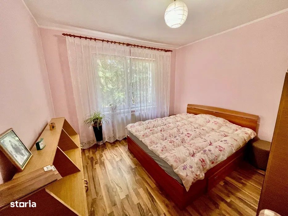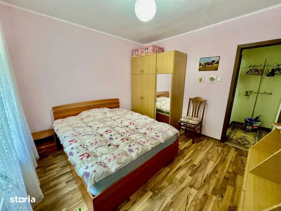 Apartamentul are o suprafata utila de 52 mp, se afla la etajul 1 al unui bloc format din 4 etaje, bloc izolat termic. Compus din 2 camere, baie, bucatarie, hol, camara, balcon inchis cu termopan. Dotat cu centrala termica, geamuri termopan, gresie, faianta, parchet melaminat, usa metalica la intrare, usi interioare schimbate, electrocasnice, amenajat, mobilat si utilat.